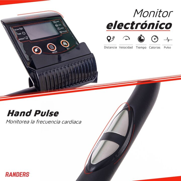 Bicicleta ARG-456 Resistencia: Magnética. Rueda de inercia de 4kg Asiento con ajuste horizontal y vertical. Soporta hasta 100Kg Ideal para personas mayores o para aquellos que están realizando rehabilitaciones musculares, ya que no es necesario levantar la pierna para acceder. Funciones del monitor:...