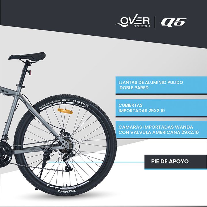 Bicicleta Mtb Overtech Q5, R29 21v Shimano, Freno Disco, Suspensión, Negro/Verde/Blanco, Talle M