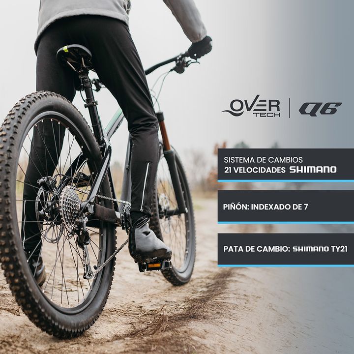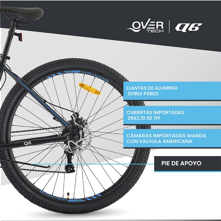 Bicicleta Mtb Overtech Q6 R29 Aluminio , 21v Shimano , Freno A Disco, Suspensión , Negro/azul/azul, Talle M