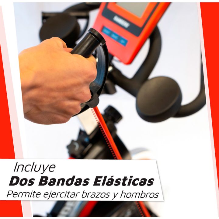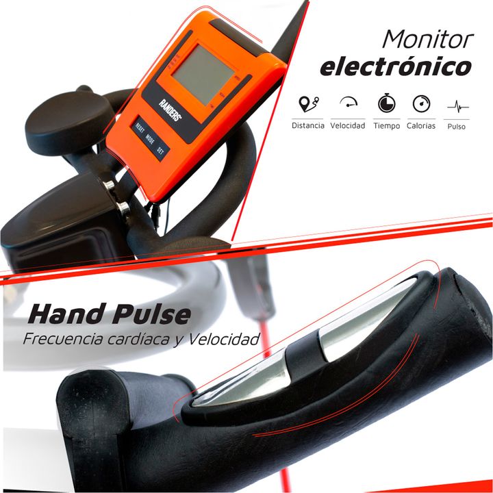La bicicleta para spinning de Randers cuenta con transmisión por correa, soporta hasta 150 kilogramos y cuenta con un disco de inercia de 18 kilogramos. Su asiento y manubrios son regulables para ajustarse a diferentes usuarios, y viene con un monitor electrónico que te permitirá llevar un control t...