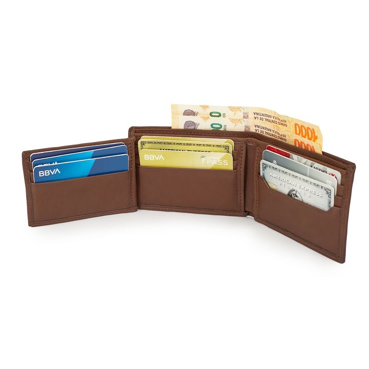 Confeccionada en cuero de alta calidad, la Billetera Faustino cuenta con dos divisiones para tus billetes y capacidad para nueve tarjetas. Es resistente al desgarro y a la abrasión humeda y seca. Faustino es ideal para los que necesitan una Billetera compacta con el tamaño adecuado! - Marca: Brigan...
