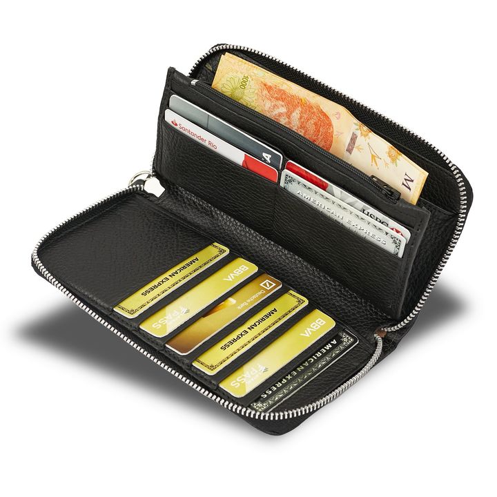 Un accesorio elegante y funcional para organizar tus pertenencias. Fabricada con cuero de alta calidad, esta billetera ofrece durabilidad y estilo en un solo producto. Cuenta con división con cierre, corres desmontable e 17,5 cm, un monedero interno con cierre y capacidad para 10 tarjetas. ¡Mantenie...