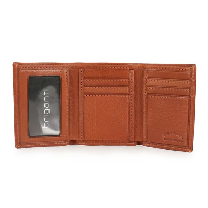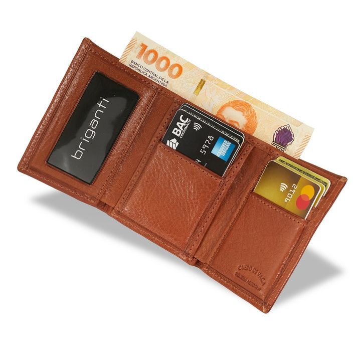 Billeteras Pedro fabricadas con cuero camel de primera calidad. Cuenta con dos divisiones, un visor y capacidad para 6 tarjetas. Un tamaño ideal para llevarlo con vos a todos lados! - Marca: Briganti - Material Interno: Tela - Material Externo: Cuero - Articulo: HMBI61793 - Alto: 10,5 cm. - Ancho: ...