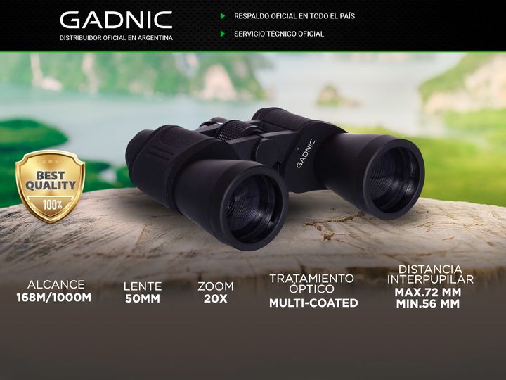 Explora con mayor claridad y precisión con los binoculares Gadnic. Diseñados para ofrecer una experiencia visual incomparable, cuentan con un zoom de 20X y lentes de 50mm, ideales para captar detalles nítidos a largas distancias. Con un alcance de 168m/1000m, estos binoculares son perfectos para act...