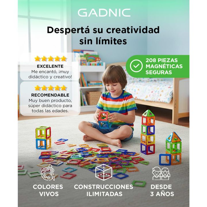 ¡Gadnic presenta su nueva linea de Juguetes para niños ! Con los bloques magnéticos de Gadnic, los niños pueden dar rienda suelta a su imaginación y construir cualquier cosa que sueñen, desde diseños en 2D hasta impresionantes estructuras en 3D. Estos juguetes no solo fomentan la creatividad, sino q...