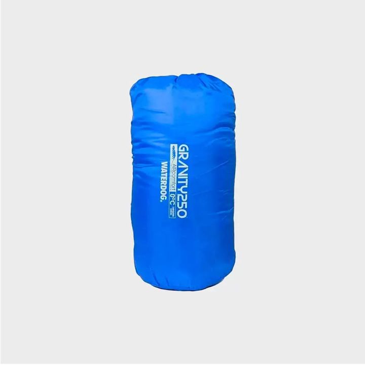 Medidas: 0.80 x 2.30 cm. Rango Térmico hasta 0º. Tela exterior: Poliéster 68D / 190T w/r cire. Tela interior: Poliéster + algodón. Relleno: Fibra hueca siliconada 250 g/m2. Bolso de transporte tipo marinero.