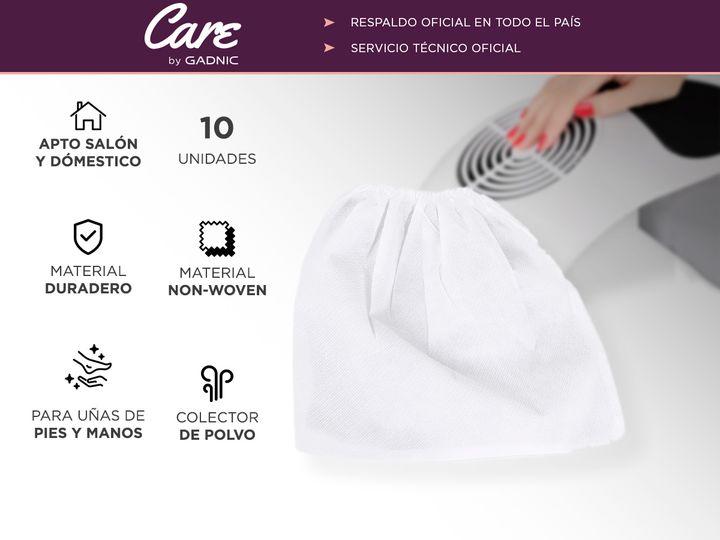 ¡Repuesto Genuino 10 Bolsas Recolector de Polvo MANI0019! Las bolsas Gadnic son adecuadas para todas las uñas polvo colector de aspiración. Su material no tela lo hace duradero y el uso prolongado. Son reemplazables y cómodas de usar. Fabricadas con cordón elástico para mayor firmeza, de forma que p...