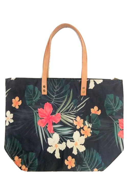 Bolso de Lona Merlin Estampado con manijas de cuero, con forro y cierre. Medidas: 48 cm de ancho x 38 cm de alto. Motivos varios, sujeto a disponibilidad. Imagen ilustrativa.