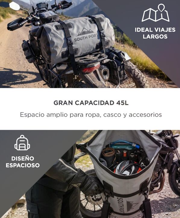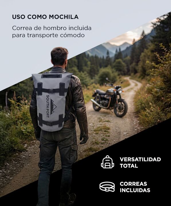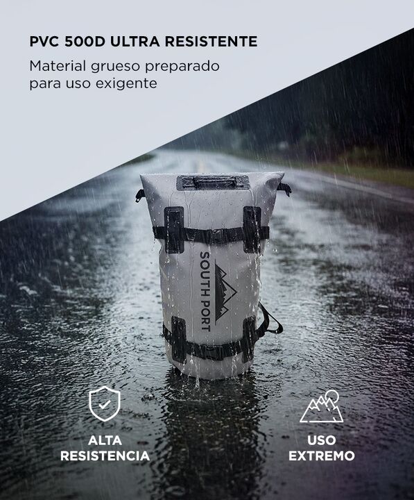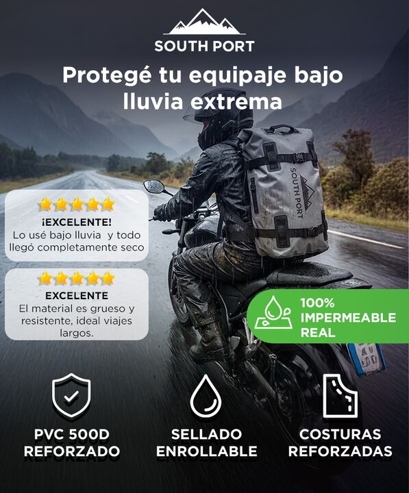 Protección total contra lluvia y agua: El Bolso Estanco Moto South Port BY GADNIC 45L está diseñado con sistema de sellado enrollable que impide filtraciones, manteniendo tu equipaje seco incluso bajo lluvias intensas. Material PVC 500D de alta resistencia: Fabricado en PVC grueso reforzado, soporta...