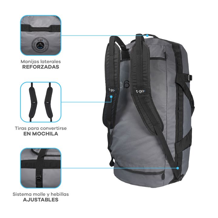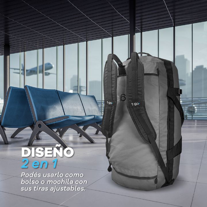 BOLSO DEPORTIVO T-GO 2 EN 1 CONVERTIBLE A MOCHILA BENEFICIOS *Gran capacidad: 88 litros. *Bolsillo de red interno para accesorios u objetos pequeños. *Ideal para actividades deportivas como natación, tenis, pádel, boxeo. *Buena opción para viajes de varios días. CARACTERÍSTICAS PRINCIPALES -Comparti...