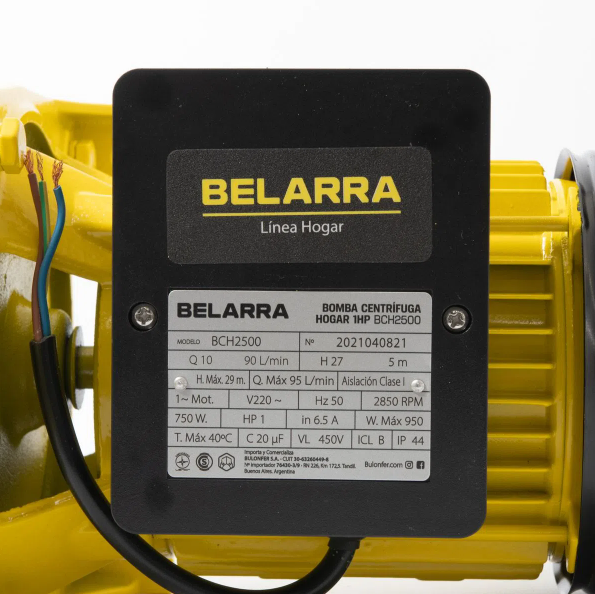 Bomba Centrifuga 3/4Hp 550W Especificaciones Técnicas Tipo de bomba Centrifuga Potencia 3/4HP Voltaje 220V Frecuencia 50HZ Material del impulsor Acero Altura máxima de elevación 23Mt Caudal máximo de agua 90L/min Es apta para agua sucia NO Altura máxima de succión 8Mt Temperatura máxima de entrada d...