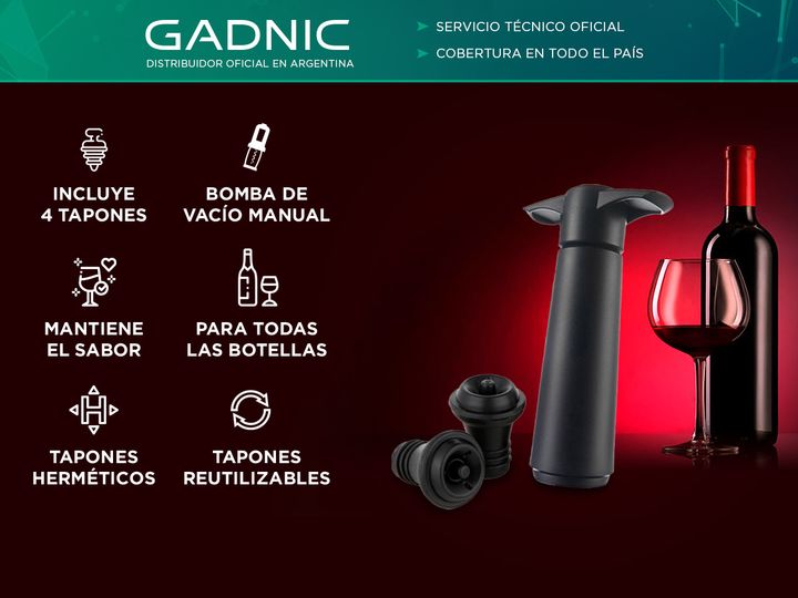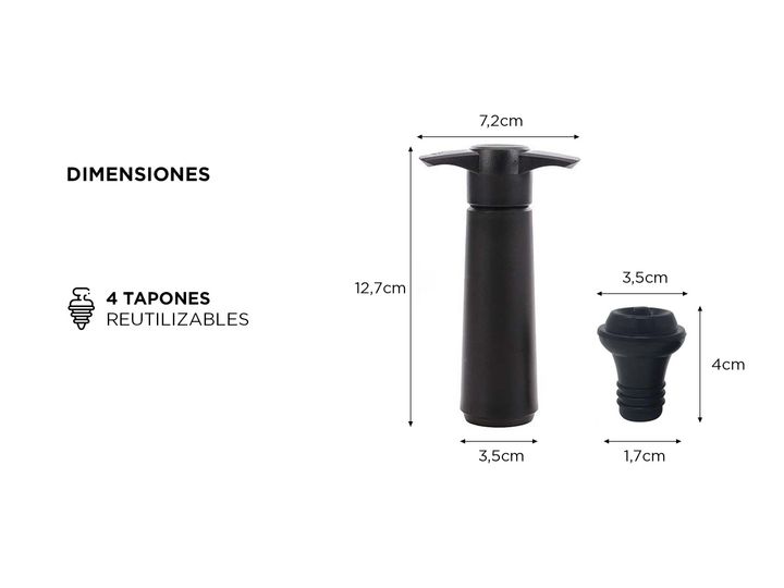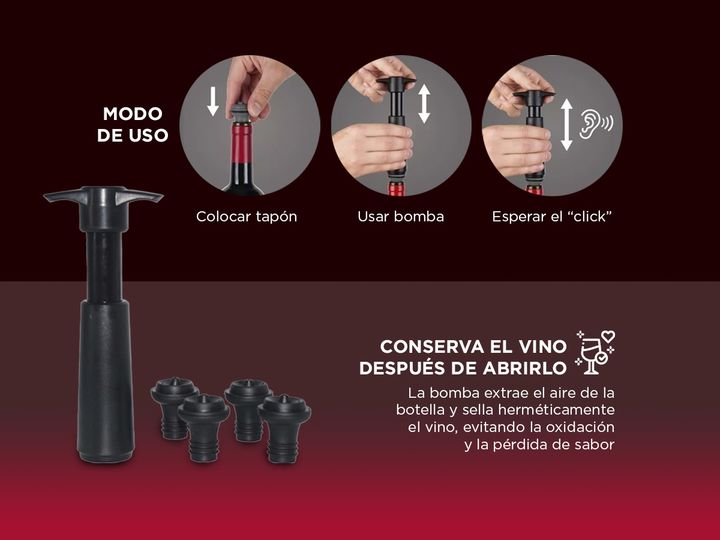 Presentamos la innovadora bomba de vacío para vino con 4 tapones reutilizables de lujo. Esta bomba de vacío es la solución perfecta para conservar el vino después de abrirlo. La bomba de vacío extrae el aire de la botella y sella herméticamente el vino, evitando la oxidación y la pérdida de sabor. L...