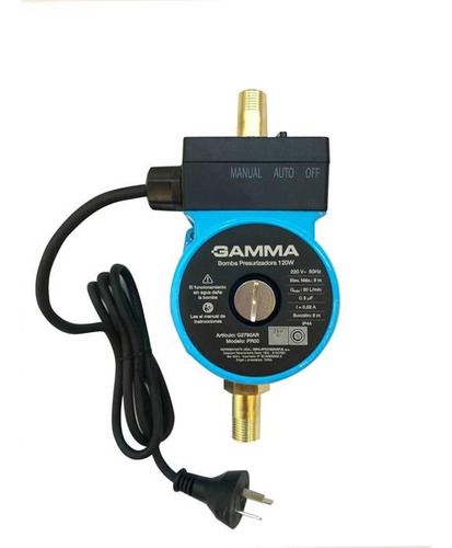 La Gamma G2790AR es una bomba presurizadora compacta diseñada para uso doméstico con agua potable. Su motor de 0,2 HP / 0,12 kW alcanza una velocidad de 2800 RPM, ofreciendo un caudal máximo de 30 L/min y altura máxima de 9 m. Funciona a 220 V / 50 Hz, pesa 2,8 kg y es ideal para mantener la presión...