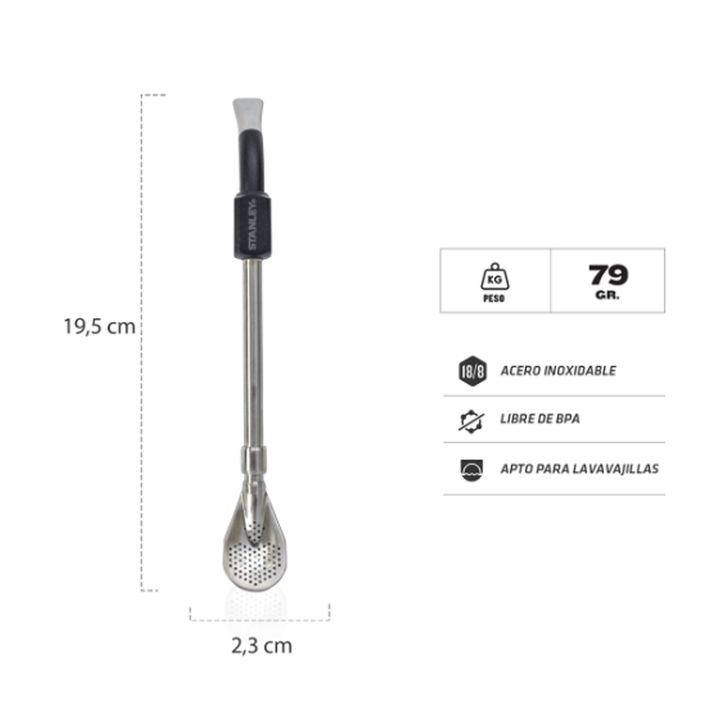 - Marca: Stanley - Modelo: Spoon (10302-002) - Material: acero inoxidable - Color: Negro - Tipo de bombilla: plata - Largo: 19 cm