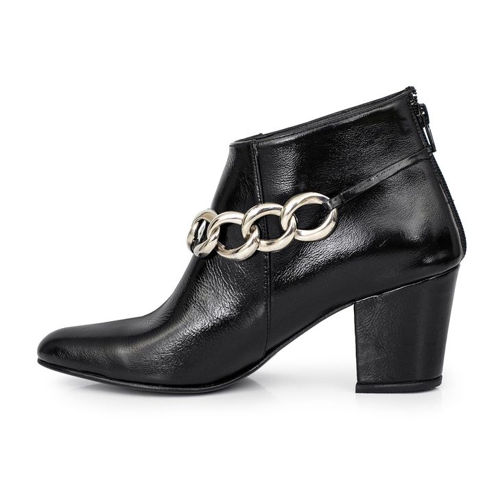 La Bota Mansfield es sinónimo de distinción. Su impecable acabado en cuero charol refleja elegancia en cada paso, mientras que su diseño depurado realza cualquier look con un aire refinado. El cierre lateral aporta comodidad sin sacrificar estilo, y su base de suela con suelín de goma garantiza una ...