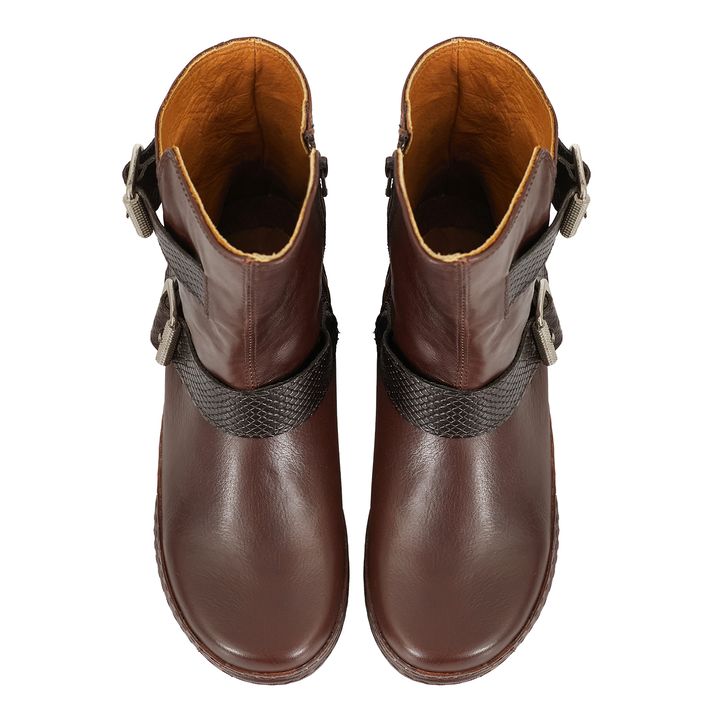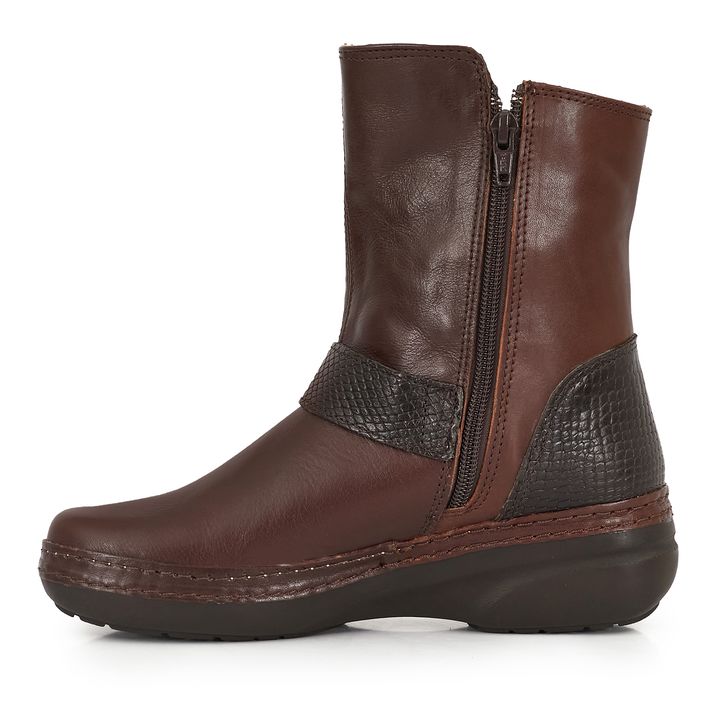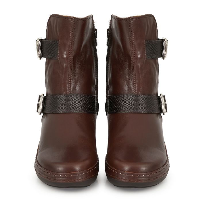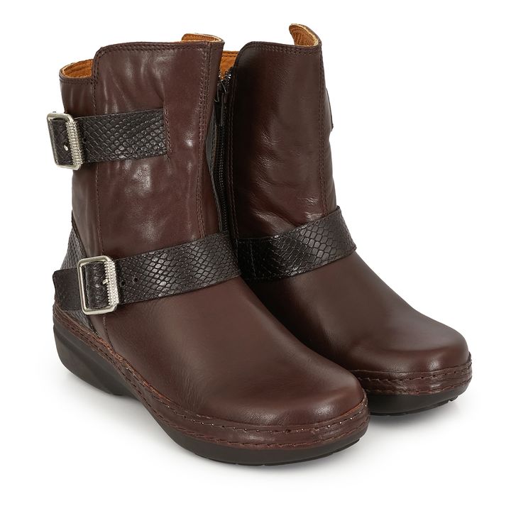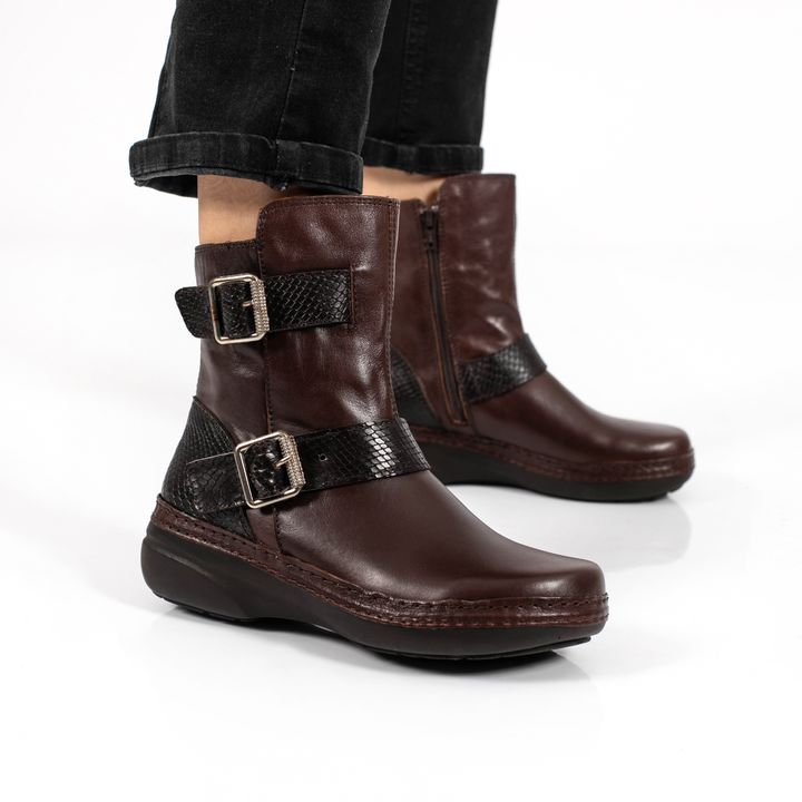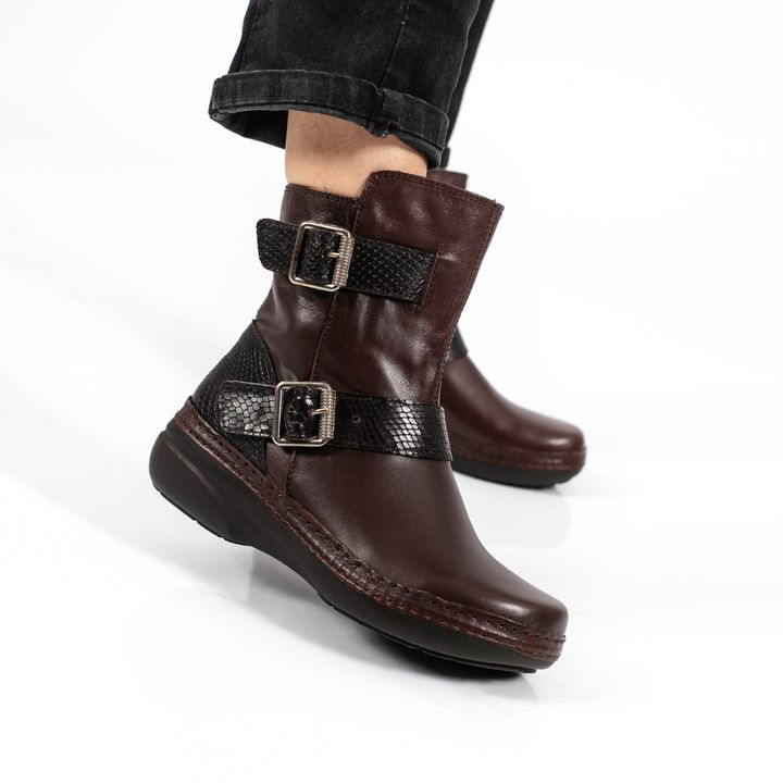 Bota media caña de mujer fabricada en cuero de primera calidad. Un diseño de estilo casual que incluye doble tira con hebillas. Este modelo te brindará un máximo confort para cada uno de tus planes. Perfecto para complementar tu estilo casual y darle un toque sofisticado a tus looks diarios.