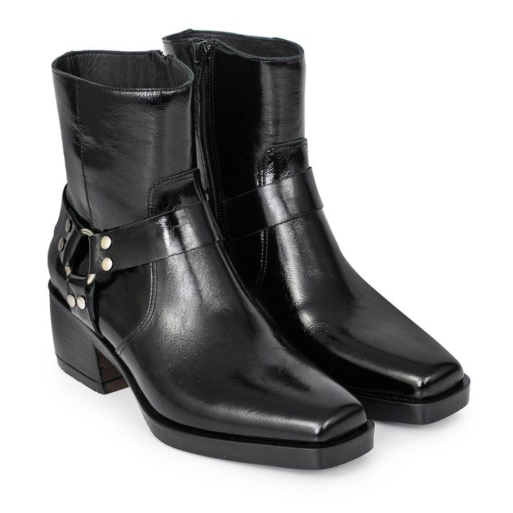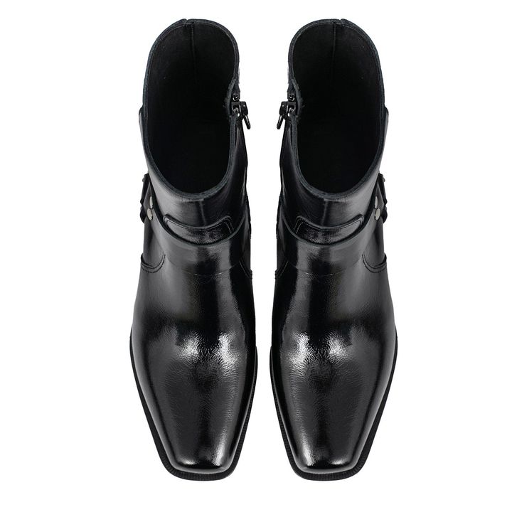 La Bota Sierra brilla con actitud propia: charol que atrapa todas las miradas, estilo texana con puntera cuadrada para un look afilado y cero predecible. Su base antideslizante y cierre lateral suman comodidad sin complicaciones, porque estar al ritmo del día no debería quitarte estilo. Ideal para q...