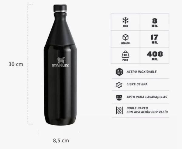 BOTELLA TERMICA STANLEY ALL DAY SLIM 1 LITROS BLACK ICONICA 10-12070-061 - BLACK Con una forma icónica, el diseño delgado hace que sea fácil de transportar. Esta botella de agua tiene dos aperturas, la mas grande para poner hielo en la botella y la segunda para tomar directamente. La botella All Day...