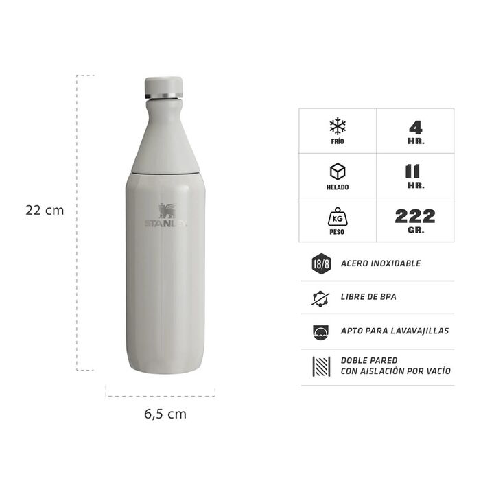Con una forma icónica, el diseño delgado hace que sea fácil de transportar. Esta botella de agua tiene dos aperturas, la mas grande para poner hielo en la botella y la segunda para tomar directamente. La botella All Day Slim de 591 ml. es sustentable, aunque un poco inesperada. Solo dale unas vuelta...