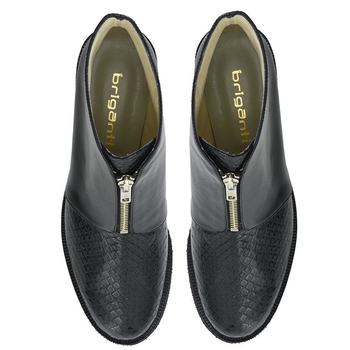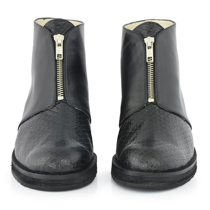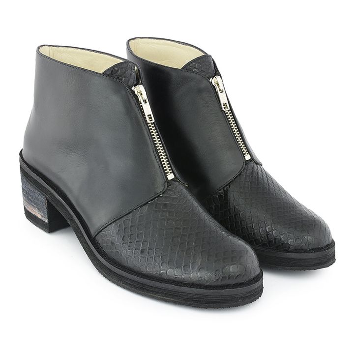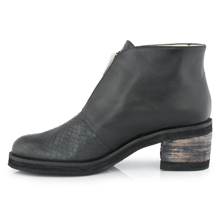 ¡La Botineta Luray es perfecta para cualquier ocasión! Su diseño clásico combina diferentes texturas en cuero grabado tipo pitón, predominando su cierre frontal en la capellada para un calce rápido y seguro. El taco mediano afinará tu figura brindando un toque sofisticado a tus mejores outfits casua...