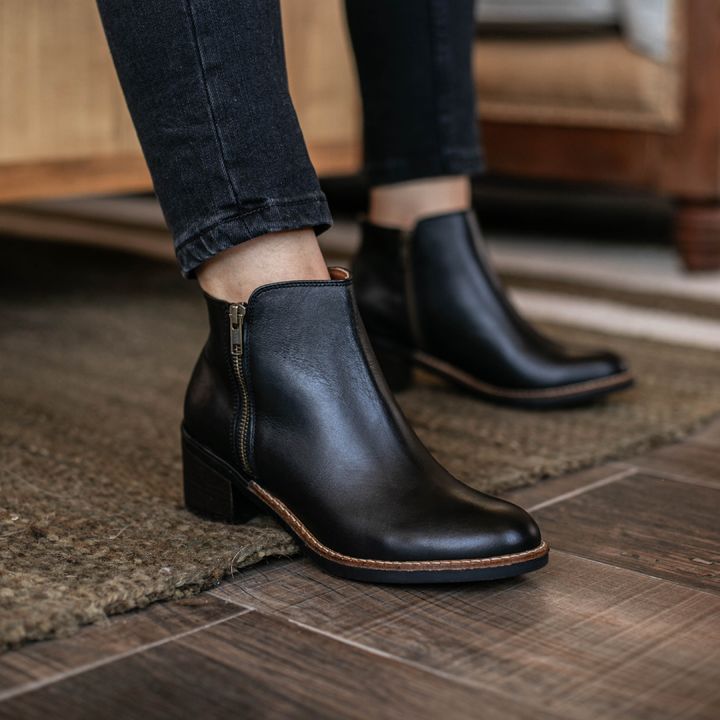 Las nuevas botas Obidia son súper distinguidas. Confeccionadas en cuero negro, con taco y caña medio. Además, incluyen cierre laterales para un calce mucho más eficaz. Las Obidia son tan versátiles que te las querrás poner para ir al trabajo, para vestir elegante e incluso para ocasiones más informa...