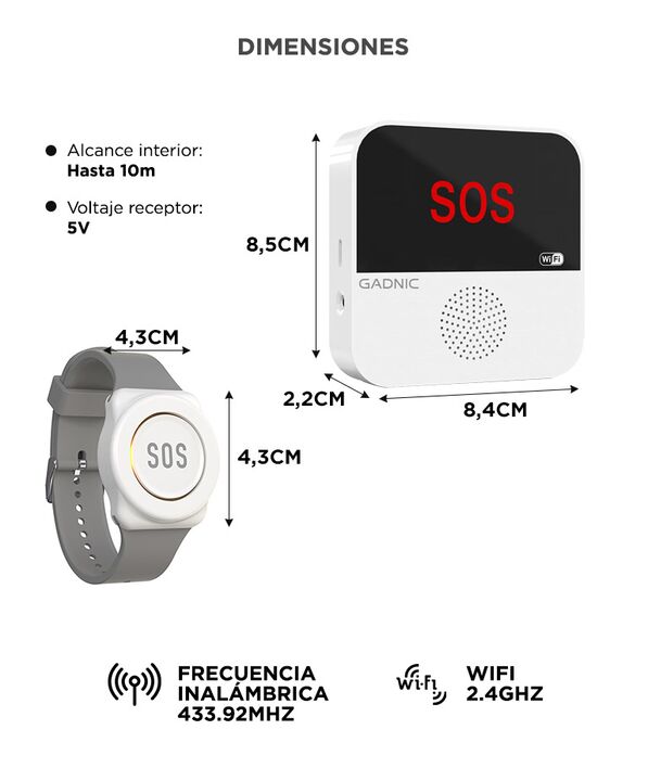 Alerta inmediata con un solo botón: El Botón de Pánico Gadnic Safe+ permite activar una señal sonora y enviar notificación al celular en segundos, ideal para asistencia rápida en el hogar. Conectividad WiFi con aplicación móvil: Compatible con redes 2.4GHz y vinculación mediante app inteligente, per...