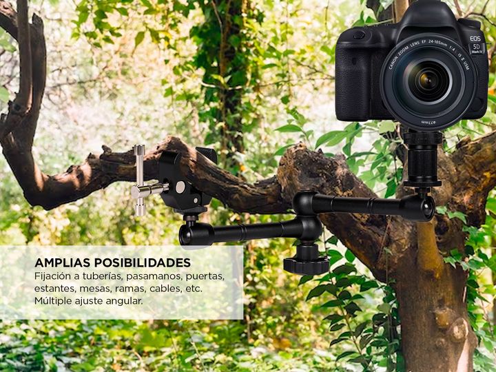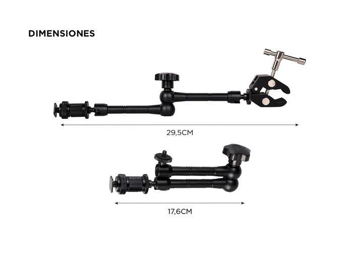 ¡Descubre el Brazo Mágico Metálico Articulado con Pinza, la herramienta perfecta para llevar tus proyectos audiovisuales al siguiente nivel! Este brazo mágico es una solución versátil y resistente que te permitirá sujetar de manera segura cámaras, luces, micrófonos y otros accesorios a diferentes su...