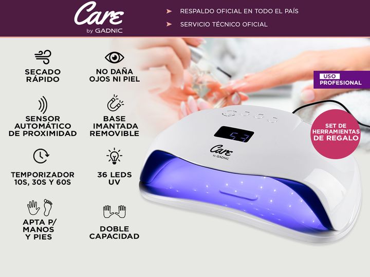¡Descubrí la nueva línea de cabinas UV LED para uñas gelificadas GADNIC! LEDSUN PLUS es una increíble cabina UV LED para uñas gelificadas/esculpidas de uso profesional. La luz funciona perfectamente tanto para los esmaltados comunes, de gel, permanentes y semi-permanentes. Su base imantada removible...