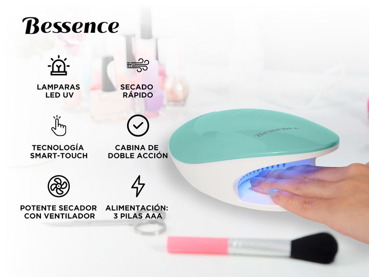 Con esta cabina BESSENCE tus uñas estarán siempre listas. Así, podrás disfrutar y sorprenderte por el resultado de este proceso que embellecerá tus uñas. Gracias a su luz led, los diseños que más te gusten quedarán plasmados en poco tiempo y con gran elegancia. Es ideal para realizar esmaltes semipe...