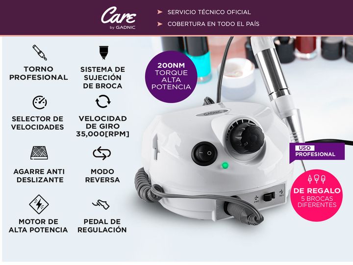 Línea de Tornos y Cabinas UV LED Profesionales para Manicura de GADNIC Torno Profesional para Manicura GADNIC GADNIC presenta su nuevo torno profesional para manicura, diseñado para ofrecer una precisión excepcional en todo tipo de uñas: gel, acrílicas y naturales. Con un ajuste de velocidad de hast...