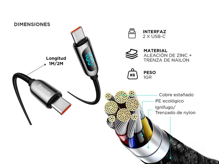 Baseus presenta el nuevo Cable De Carga Rápida De Tipo C a Tipo C de 100 W: Tecnología de carga rápida: El producto tiene una capacidad de carga increíblemente rápida de 100 W, lo que significa que puede, por ejemplo, restaurar aproximadamente el 60 % de la energía de su teléfono inteligente en solo...