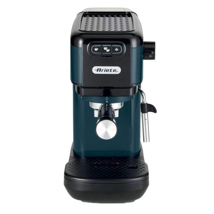 Cafetera Espresso Ariete Slim Negra PA-CE1399NE-I Máquina de diseño ultrafino, de 14 cm de ancho, para preparar café, capuchino, té e infusiones. Compatible con café en polvo y monodosis ESE. Diseñada para quienes disfrutan de la vida a todo ritmo, ¡la compacta y vibrante cafetera espresso 1399 es j...