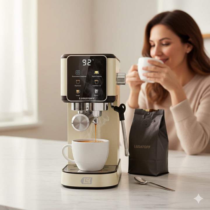 CAFETERA EXPRESSO 1L CON ESPUMADOR Y ADAPTADOR PARA CÁPSULAS - 20 BAR Diseñada para que cada café sea un momento especial. Con tecnología de bomba italiana y caldera thermoblock, esta cafetera convierte tu cocina en una verdadera barra de espresso. Ideal para quienes valoran el aroma, la crema perfe...
