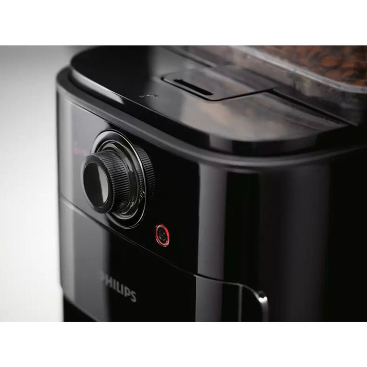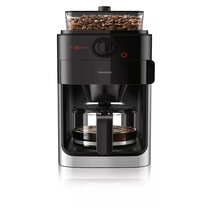 Disfruta de un gran café a partir de granos de café recién molidos con la cafetera Philips Grind & Brew con molinillo integrado. Ajusta la intensidad del café con la función de selección de intensidad.