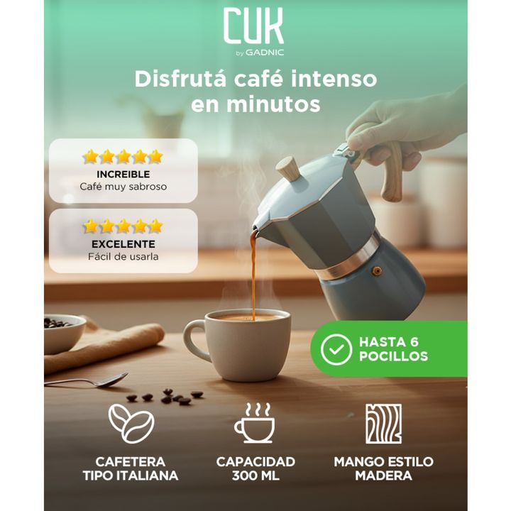 ¡ Nueva Cafetera Moka Cuk By Gadnic ! Empezá tu día con energía y de la mejor manera, disfrutando de la textura y calidad de un buen café en la comodidad de tu casa. Con un sabor concentrado y un aroma que se apodera de tu casa, tu café moka es el complemento ideal para cualquier momento del día. Es...