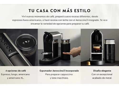 Versatilidad de Cafetería en Casa Sistema 5 en 1: Gracias a sus cinco botones dedicados, podés preparar una amplia gama de opciones con solo un toque: Espresso (40 ml) y Lungo (110 ml). Americano (150 ml) y Americano XL (200 ml) para quienes prefieren un café largo y suave. Agua Caliente (200 ml): I...