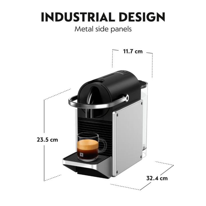 Pixie + Aeroccino Estilo industrial, café excepcional La máquina Pixie, rinde homenaje al estilo industrial moderno. Creada para cautivar a los amantes del buen café y el diseño, su estructura minimalista y su tamaño compacto la convierten en una pieza clave en cualquier cocina. Solo necesitas presi...