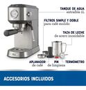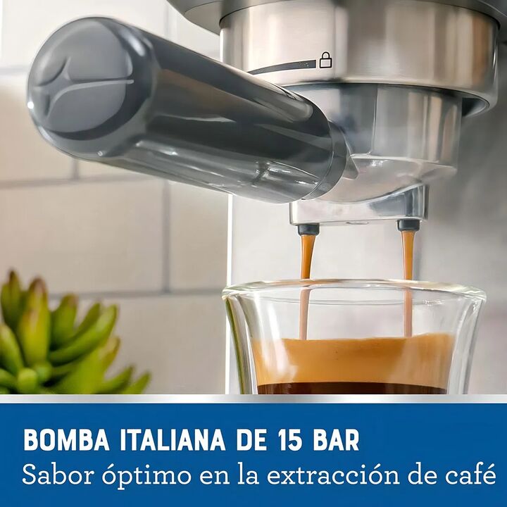 Prepara bebidas de gran calidad, lo cual te permitirá sentirte como un barista en casa. Cuenta con un sistema de pre-infusión y tecnología THERMOBLOCK para un precalentamiento rápido y control automático de temperatura e incluye una bomba italia...
