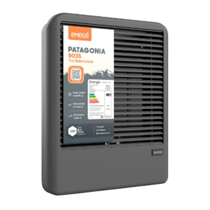 ESPECIFICACIONES: Salida aire caliente Rejilla salida aire caliente (*) Mirilla Encendido piezoeléctrico Perilla de encendido y regulación Entrada aire frío (inferior) Tiro balanceado (o en U) 3500 kcal Área a calefaccionar: 70 m³ Medidas: - Alto: 63 cm - Ancho: 52 cm - Profundidad: 13 cm