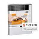 CARACTERÍSTICAS PRINCIPALES: Calefactor Tiro balanceado de 3500 Kcal Salida de calor frontal y superior Frente frio para mayor seguridad No consume el Oxigeno del ambiente Sencillez en el encendido, regulación y mantenimiento Comandos superiores Encendido Piezoelectrico Valvula de seguridad Apto par...