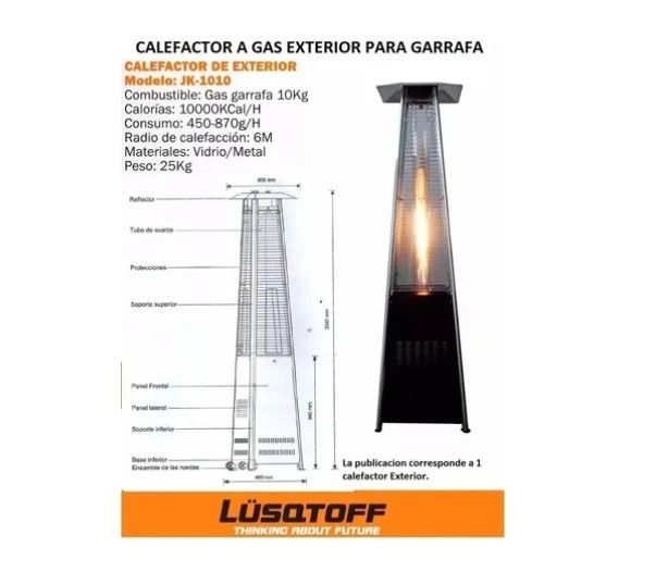 Estufa Piramide Exterior Calefactor 10000kcal Bronce Lusqtoff JK-1010B - El calefactor JK1010 de Lüsqtoff es ideal para espacios al exterior. Es muy común en bares, restos, cafés, como también en quintas y estancias. - De diseño moderno y con gran potencia. La garrafa se introduce dentro del calefac...