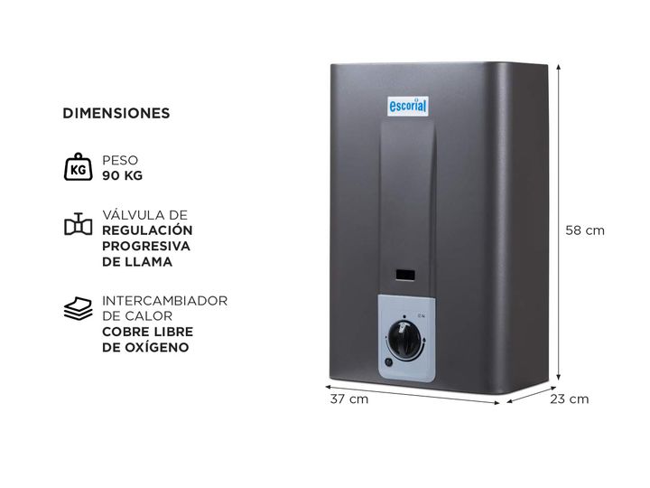 Los calefones a gas permiten un mayor ahorro comparado con los consumos de los de tipo eléctrico. Son ideales para familias o grupos numerosos, ya que pueden calentar más agua por hora que los sistemas eléctricos. Especificaciones Capacidad: 14 lts/min Sin llama piloto (encendido automático) Clase A...