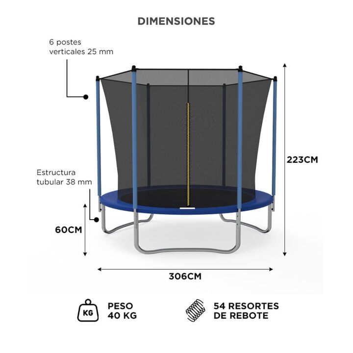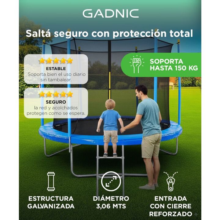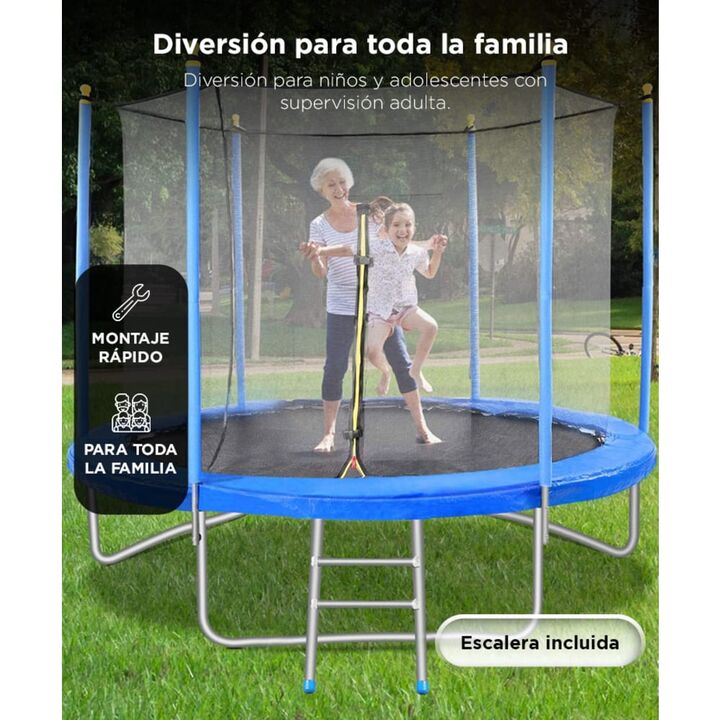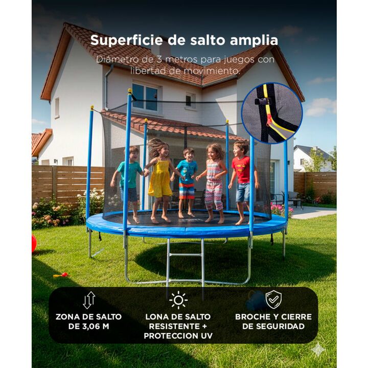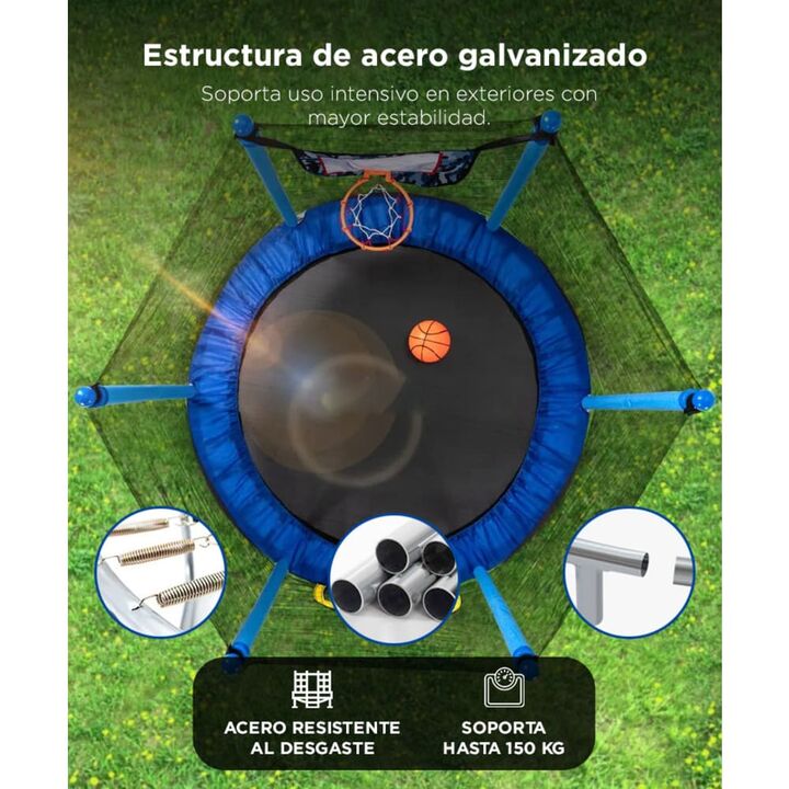 Seguridad total para cada salto: Con red de protección perimetral, postes acolchados y cubierta de muelles, evita caídas y golpes accidentales. Ideal para jugar sin riesgos. Estructura resistente y estable: Fabricado en acero galvanizado de 38 mm con base firme y piezas reforzadas, es apto para uso ...