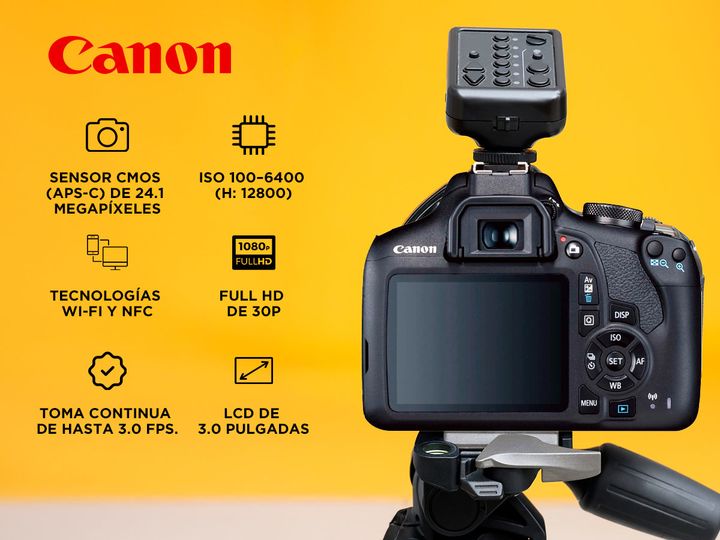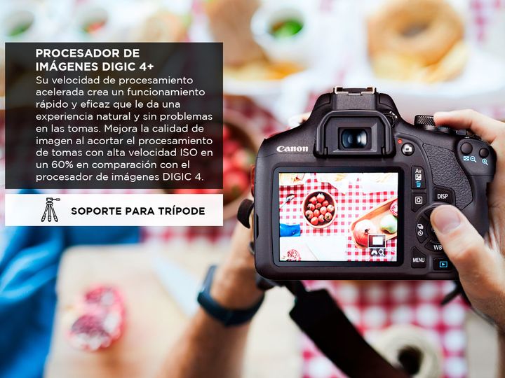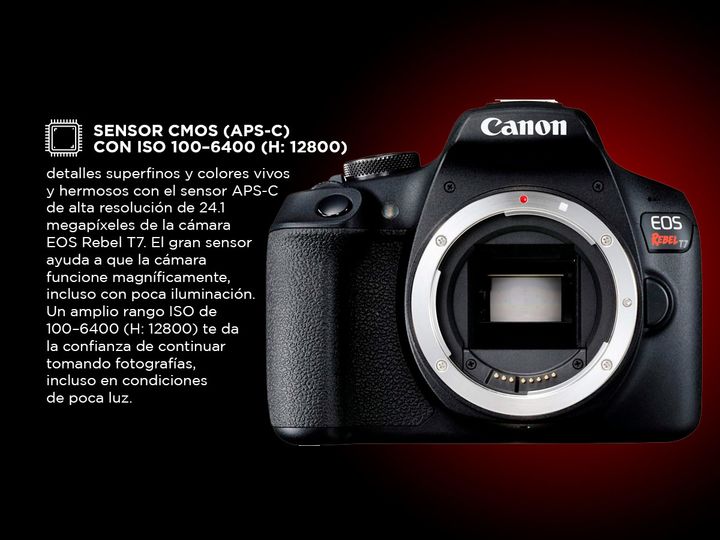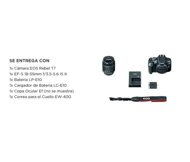 Descubrí la Canon EOS Rebel T7 y lleva tu fotografía al siguiente nivel. Con su sensor CMOS de 24.1 megapíxeles y el potente procesador de imagen DIGIC 4+, esta cámara ofrece imágenes detalladas y colores vibrantes, ideales para capturar cada momento con calidad profesional. Su lente es versátil par...