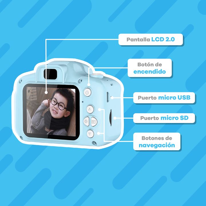 CÁMARA DIGITAL COMPACTA INFANTIL PARA NIÑOS ( No incluye memoria micro sd ) Link al video del producto https://www.youtube.com/shorts/k_pNm4-4dZ4 *La cámara es pequeña y liviana, muy fácil de llevar. *Diseño anti golpes, ideal para manos pequeñas. *Garantía de 12 meses (por fallas de fábrica) *Filma...