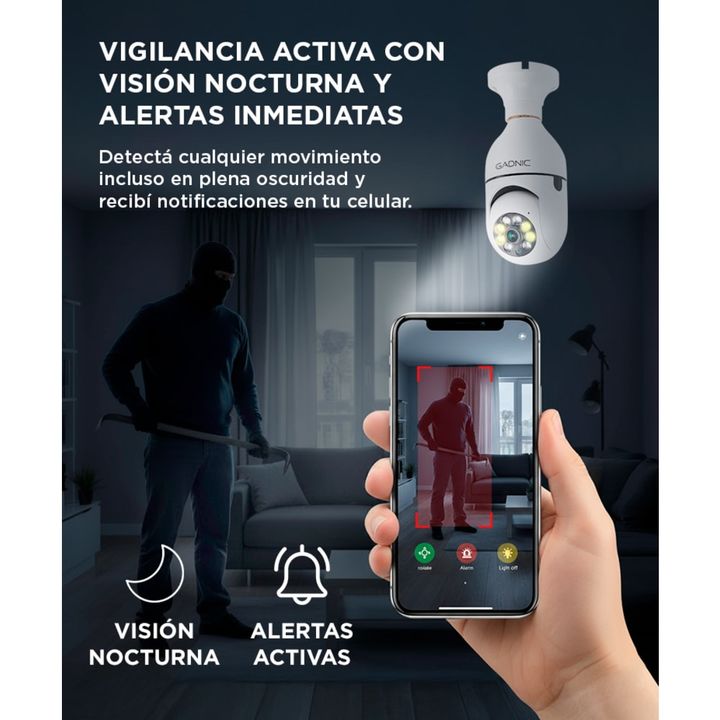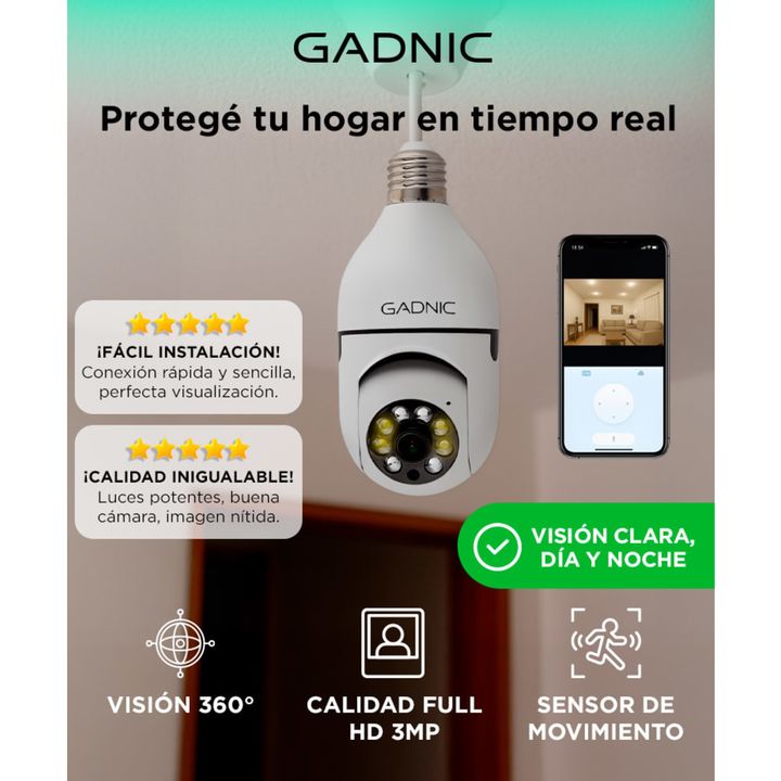 Gadnic presenta su innovadora cámara de seguridad en formato Domo La ventaja principal de esta cámara de seguridad es su colocación sencilla, combinada con la calidad en FULL HD y la visión nocturna. Monitoreo a distancia La cámara se conecta fácilmente con la app de control a tu celular, la conexió...