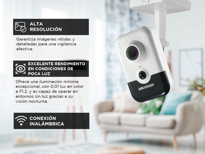 Obtén vigilancia avanzada con la Cámara IP Wifi Hikvision 1080p Cubo 2420 2MPx 2,8mm Audio DS-2CD2423G0-IW. Con un sensor CMOS de 1/2,7 y tecnología de escaneo progresivo, garantiza imágenes nítidas y claras. La cámara ofrece una iluminación mínima excepcional, con 0,01 lux en color a F1.2, y es cap...