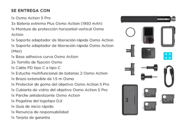 Descubrí la Osmo Action 5 Pro Adventure Combo de DJI, la cámara que lleva tus aventuras al siguiente nivel. Pensada para los exploradores más exigentes, esta cámara de acción combina la última tecnología con una resistencia sin igual. Cada detalle de tus aventuras será capturado con una calidad de i...