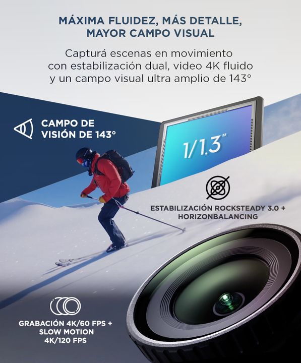 Capturá sin manos con montaje magnético: Usá la cámara directamente sobre ropa, casco o accesorios gracias a su sistema de anclaje magnético. Ligera, compacta y lista para grabar desde tu punto de vista sin esfuerzo. Video 4K/60 fps y cámara lenta 4K/120 fps: Lográ resultados cinematográficos con gr...