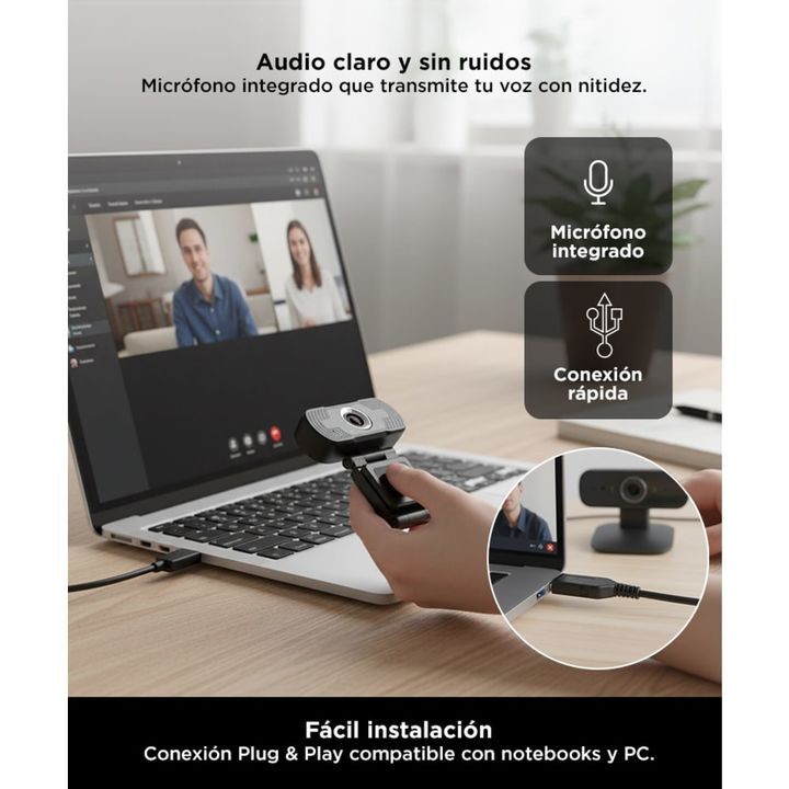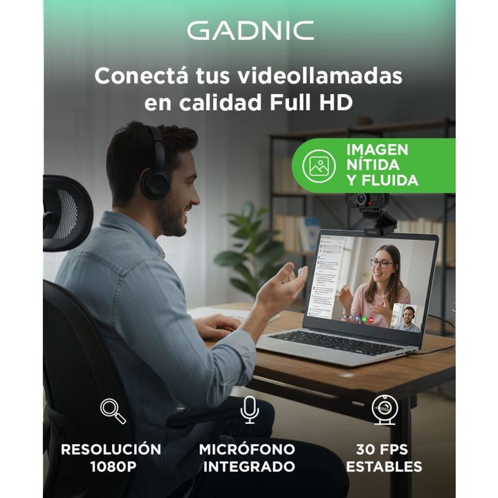 La Webcam Full HD Gadnic es la opción perfecta para quienes buscan mejorar la calidad de sus videollamadas, grabaciones y transmisiones en vivo. Con una resolución de 1920x1080p, podrás disfrutar de imágenes nítidas y claras, asegurando que siempre te vean bien en todas tus interacciones virtuales. ...